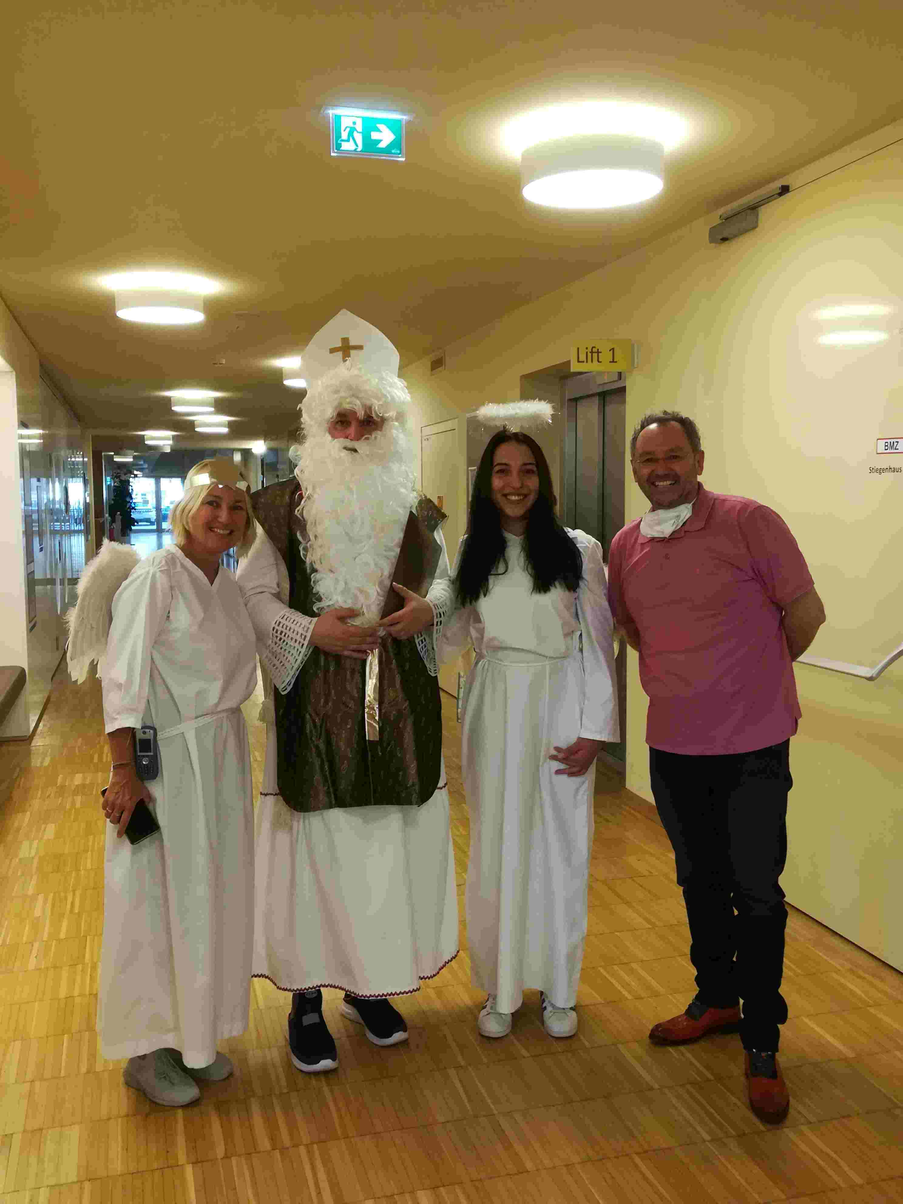 Am Dienstag, den 6. Dezember, spielte das „Goldberg Trio“ im ISD Wohnheim im „Café im Grünen“. An die 35 Bewohner*innen waren mit ihren Angehörigen gekommen und lauschten dem sehr festlichen Konzert. Der Applaus für Denis Vasylynets (Violine), Marinus Kreidt (Viola) und David Unterhofer (Cello) war groß. Sogar der Nikolaus schaute nach seinem Besuch bei den Bewohner*innen vorbei.