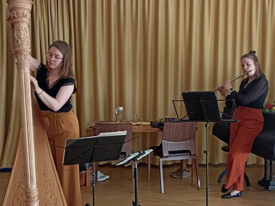 Im voll besetzten Festsaal lauschten über 50 Bewohner*innen, Gäste und Mitarbeiter*innen dem Konzert, das als Muttertagskonzert angekündigt war. Sie wurden beschenkt mit Melodien von Piazzolla bis Mozart. Martha Fritz und Julia Klampfer führten sehr lebendig durchs Programm.