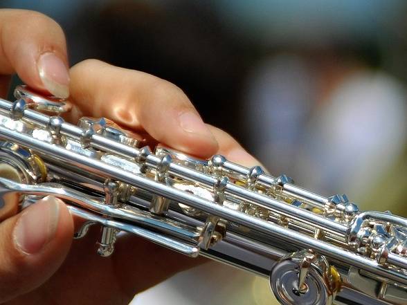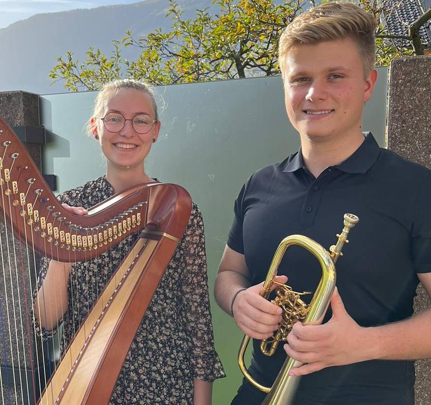 Es spielen die Querflötistin Julia Kampfer und die Harfenspielerin Martha Fritz.