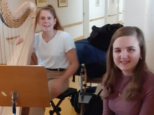 Die Harfinistin Sina Fankhauser und Querflötistin Laura Krismer halten im "NoRa", einer Einrichtung der Tiroler Sozialen Dienste, einen Workshop ab. Hier erfahren Sie mehr über die Musikerinnen Laura Krismer und Nora Fankauser.